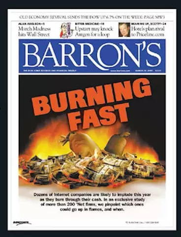 美国商业周刊《Barron》是第一个做这件事的机构。2000 年 3 月,Barron 提出了 Burn Rate 概念,它们列了一张表,上面是顶级 .COM 公司还需要多长时间才能烧光钱。