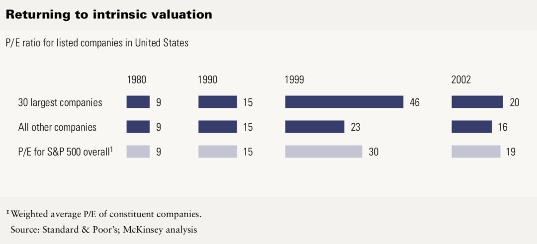 美联储在 2000 年 2 月宣布加息,流动性减少,对资产质量的要求突然提高。在这个时候,市场必须进化出新的估价模型,把成长型企业特有的问题考虑进去。比如,为了达到 300% 的年增长,公司需要在补贴用户和投放广告上烧多少钱才合理?