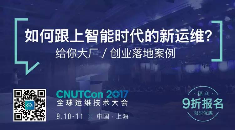 CNUTCon 全球运维技术大会将于 9 月 10-11 日在上海举行,大会以“智能时代的新运维”为主题,涵盖 AIOps、SRE、DevOps、运维监控与安全等专场,邀请了来自 Google、Uber、eBay、BAT 等公司大咖分享他们在最新运维技术实践过程中遇到的坑与经验,现场为你解疑答惑,点击“阅读原文”了解更多精彩!9 折限时优惠,报名时输入 CNUTCon666 还可再减 200 哦!