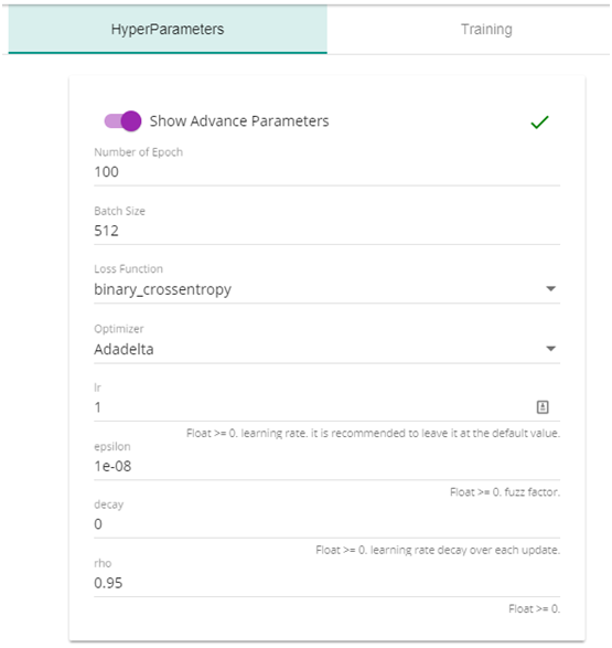 我们使用的超参数如下图所示,你可以随意更改试用这些超参数。