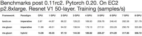 Gluon同时支持灵活的动态图和高效的静态图,让你在享受动态编程的灵活易用的同时最小化性能的损失。而Gluon的HybridBlock和hybridize接口让你可以在静态动态间一键切换。0.11版Gluon比0.20版Pytorch快10%以上,在未来的一两个月我们会加入更多优化,再提高10%以上的性能。