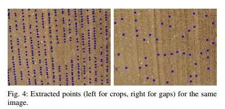 图4 同一图像的提取点(作物的左侧,间隙为右侧)。