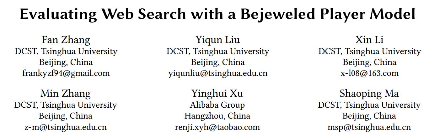 论文标题:Evaluating Web Search with a Bejeweled Player Model