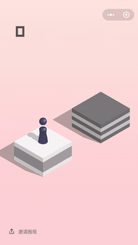 小时候很多人都玩过跳方格的游戏,而现在你在微信中也能这样玩。跟随一个长得像感叹号的小人,你可以在盒子间来回穿梭。手指长按屏幕,小人会开始弓腰蓄力,松开就会跳到下一个盒子上,很像我们之前介绍的那个会后空翻的机器人。
