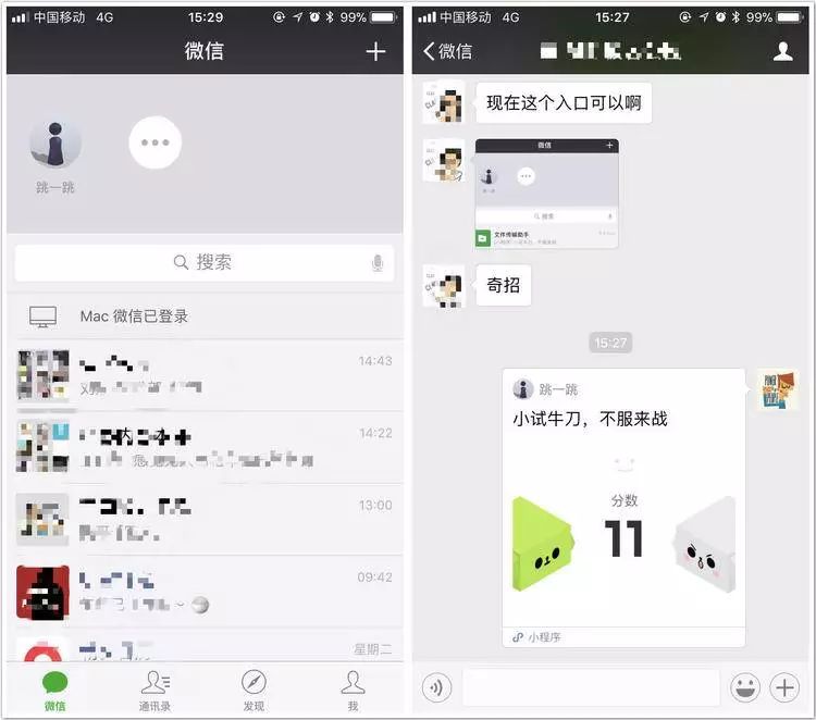 跳一跳很简单,简单到一根手指就能完成,像极了当年的打飞机。但现在的微信和几年前相比已经产生了翻天覆地的变化。跳一跳不是一时兴起之作,而是作为微信小游戏的首发,在它之后可能又会诞生一个巨大的游戏生态。不过就和打飞机一样,跳一跳依托的还是微信中的社交关系,只是小游戏是一个全新的游戏形态,和小程序一样,它入口更多、体验更轻、玩法也更丰富。