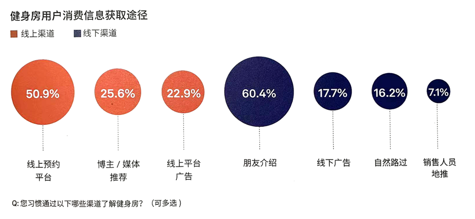 健身报告中,“朋友介绍”是用户选择健身房最看重的因素,朋友背书能带来营销不具备的影响力。诸多从业者也表示,转介绍的获客效率最高。尤其信息爆炸的年代,公域信息五花八门,注意力容易缺失无法聚焦,因而私域营销变成重中之重。