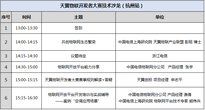中国首届“天翼物联开发者大赛”技术沙龙杭州站