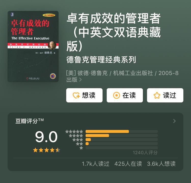 推荐语:知识工作者必须卓有成效 卓有成效是可以学会的。《卓有成效的管理者》告诉我们:
