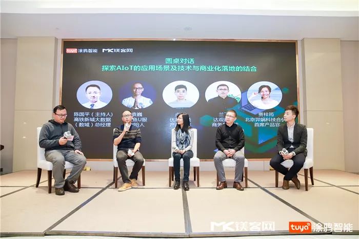 在最后以《探索AIoT的应用场景及技术与商业化落地的结合》为主题的圆桌对谈中,大鱼U服创始人袁巍、优地科技产品总监卢琨、达观数据商务副总裁兰飞、羿娲科技合伙人贾梓筠展开了一场别开生面的讨论。