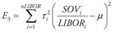 第一项最小化期限结构中市场价格和拟合价格之间的差异,第二项使结构受到平滑约束;第三项使用LIBOR driven规范来确定没有短期主权问题的市场的期限结构的短端顶点。目标函数中的项包含用于控制不同效应的相对影响的权重。例如,将大权重放置在第二项(E2)上将迫使得到的利率结构非常平滑。