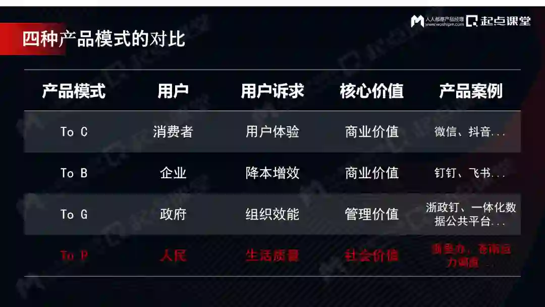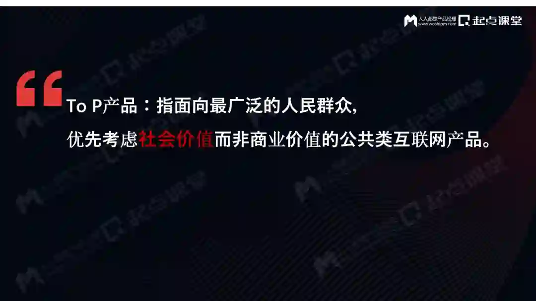 而To P 是指面向广泛的人民群众提供的产品。这个方向上的产品,本质上提供的是一种社会价值。