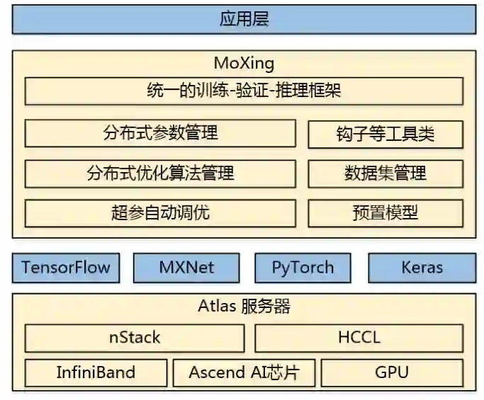 MoXing内置了多种模型参数切分和聚合策略、分布式SGD优化算法、级联式混合并行技术、超参数自动调优算法,并且在分布式训练数据切分策略、数据读取和预处理、分布式通信等多个方面做了优化,结合华为云Atlas高性能服务器,实现了硬件、软件和算法协同优化的分布式深度学习加速。