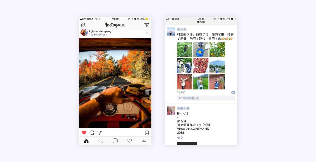 举个例子,可以看到ins的界面,当手机无网或弱网的时候,我们在对这个图片进行点赞之后,我们的操作界面上是显示成功的,但看看上面还在loading, 所以事实上系统还没有上传这个信息,他的朋友也看不到这个信息。这就是技术上的一个善意的小谎言,等到网络连接成功后,系统会把记录的这个操作发送出去;同理,微信也是,当我们在没有网络的情况下给朋友点赞,在自己这边是显示成功的,事实上这个赞对方并没有接收到,这也是提升控制感很好的一个小方法。