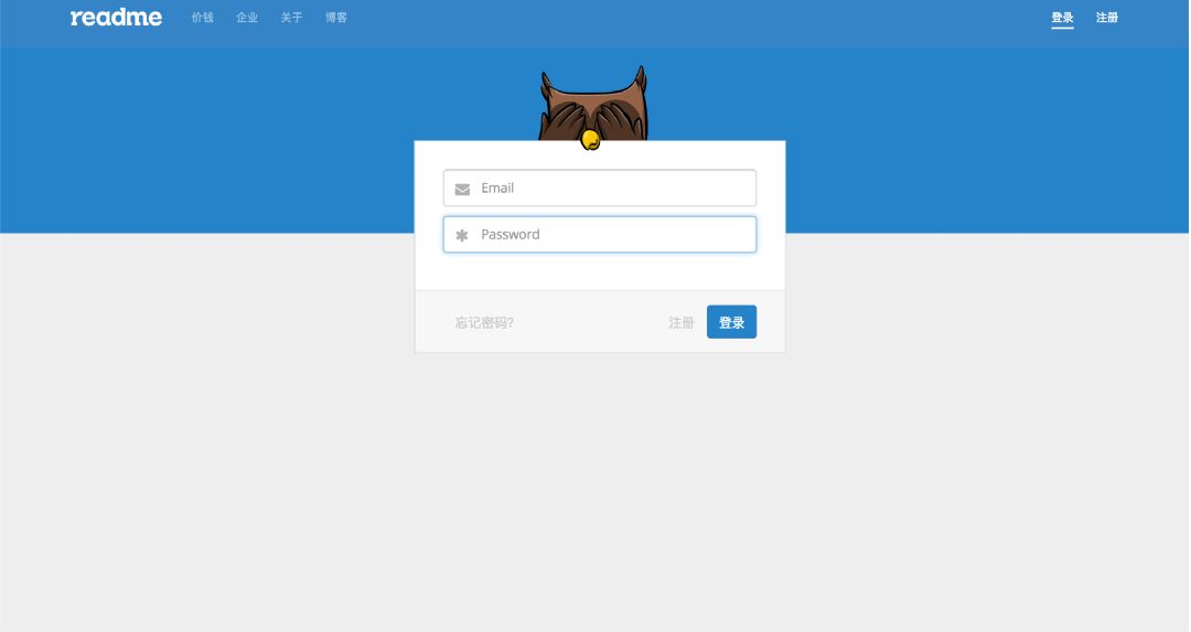 例如在Readme的登陆页面上,输入框上面有只猫头鹰,当你输入密码时,上面这只猫头鹰会遮住自己的眼睛,在输入密码的过程中给抓住用户注意力的同时,也向用户传递了安全感。