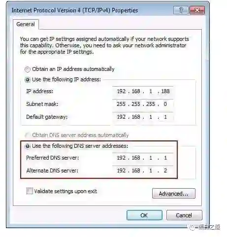 上例的DNS服务器是192.168.1.253,这是一个内网地址。有一些公网的DNS服务器,也可以使用,其中最有名的就是Google的8.8.8.8和Level 3的4.2.2.2。