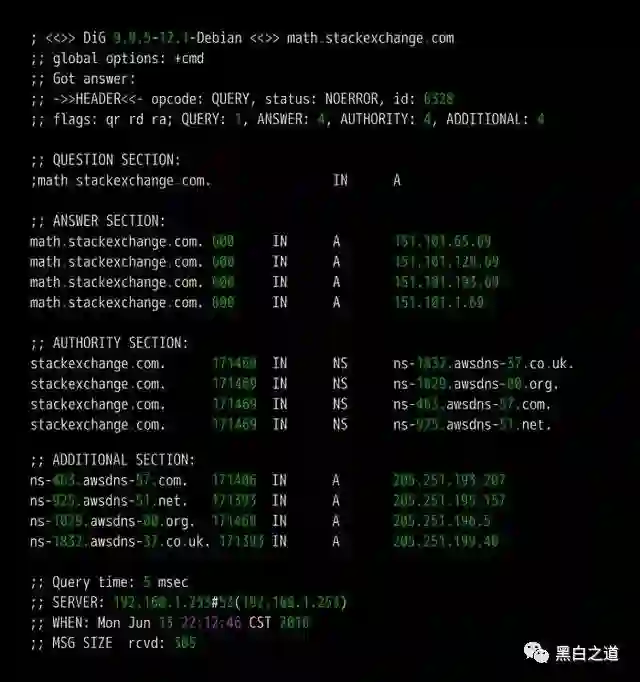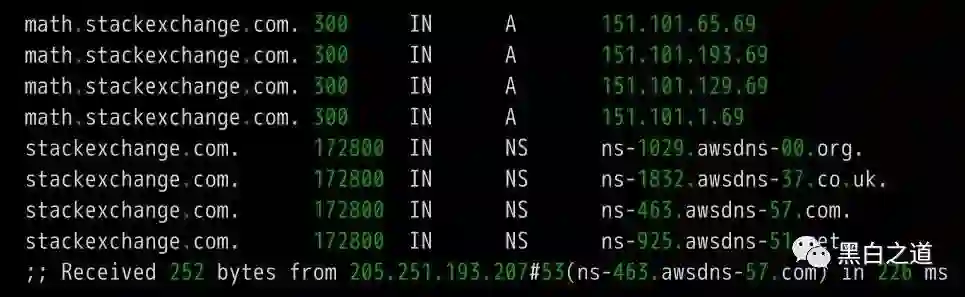 上面结果表示,查询域名 math.stackexchange.com 的A记录,