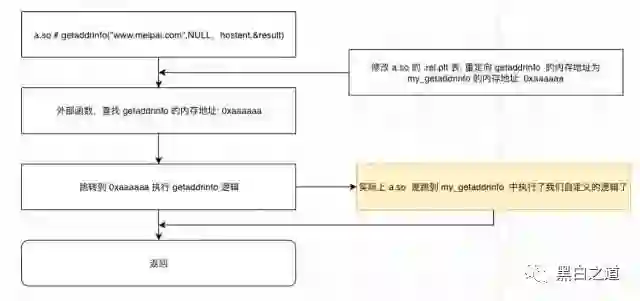 这样,a.so 在实际运行时会被拐到我们的 my_getaddrinfo 中?