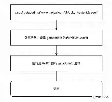 正常情况下,a.so 中执行到 getaddrinfo 的函数流程是这样的: