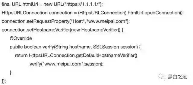 解决 SSL/TLS 握手中域名校验问题的方法在于我们重新配置 HostnameVerifier, 让请求库用实际的域名去做域名校验,