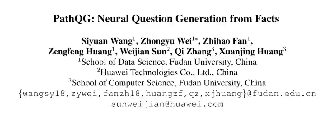 EMNLP2020中,复旦大学数据智能与社会计算实验室 (Fudan DISC) 提出了一篇基于事实的问题生成工作,论文题目为:PathQG: Neural Question Generation from Facts,被录取为长文。
