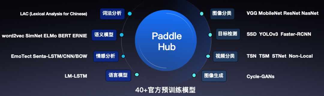 △ 图1 PaddleHub提供了40+官方预训练模型