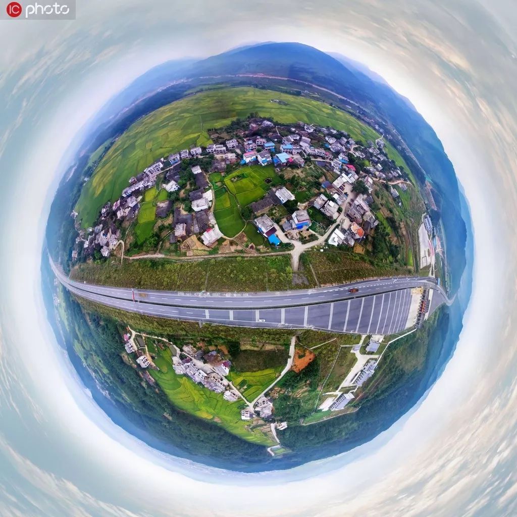 从高空俯瞰溪村,大片的水域便是松山湖。