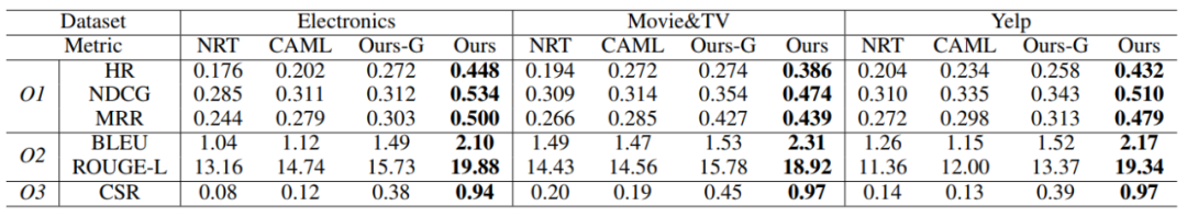 我们在 Amazon Electronics、Movies&TV、Yelp 三个数据集上模拟用户反馈进行了充分实验。实验结果显示提出的可解释对话推荐模型在推荐准确性、可解释性以及用户反馈满足比例上均明显优于基准算法,达到了系统设计的各个目标。