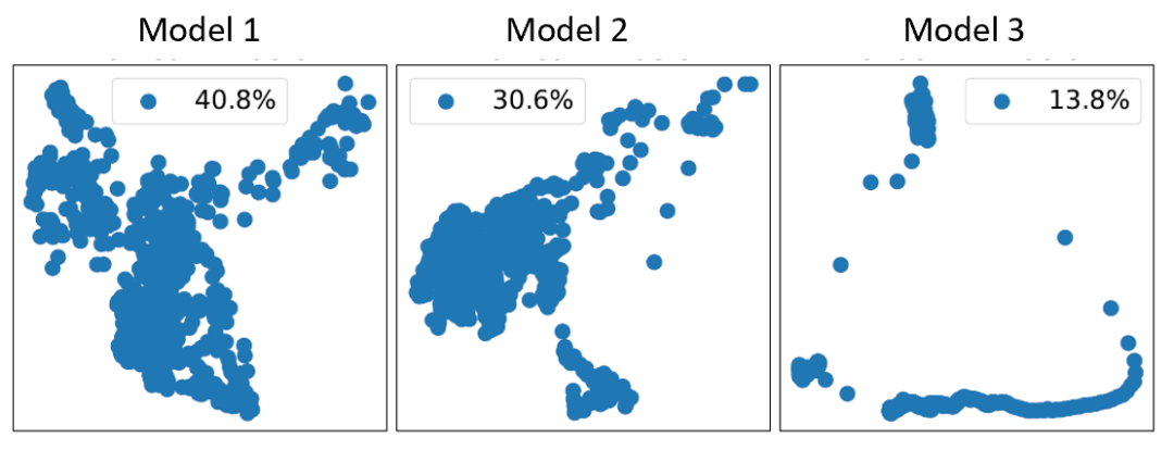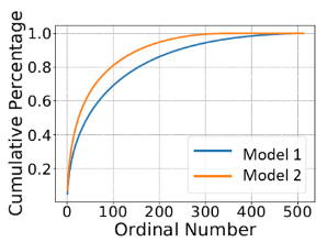 首先,我们选择了3个 RL 模型玩 Gravitar 游戏,其中模型1分数最高,模型3分数最低。通过可视化三个模型的特征,如图3所示,分数越高的模型提取的特征越分散。我们进一步观察特征矩阵的特征值分布,如图4所示,分数越高的模型奇异值分布越均匀,而不是集中在少数奇异值上。由此,我们提出强化学习模型表达的指标,称为 NSSV,定义如下: