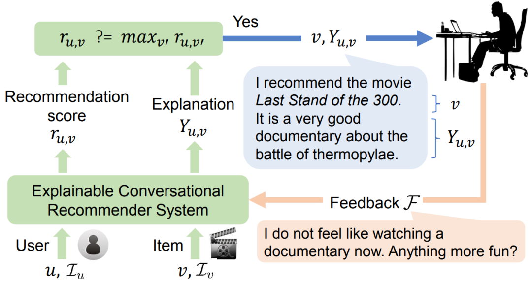 解释如同用户与推荐系统之间的桥梁,好的解释不但能帮助用户更好的理解推荐系统模型的机理与逻辑,还能够潜在地引导用户向系统反馈自己的意见(例如启发用户在推荐系统给出欠佳的结果或解释时对其进行指正),帮助系统进一步提升准确性。现有的可解释推荐系统往往忽视了后者,只给出一次推荐结果及解释,无法对用户可能的反馈加以吸纳。