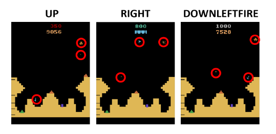 图2:在 Atari 游戏中的原始帧,细粒度的局部差异用红色圆圈标记
