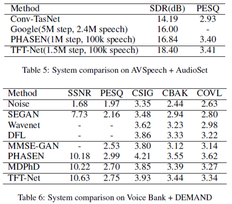 实验结果如下,以客观指标作为优化目标,本文的方法在两个数据集上的 SDR 和 SSNR 都高于现有方法。