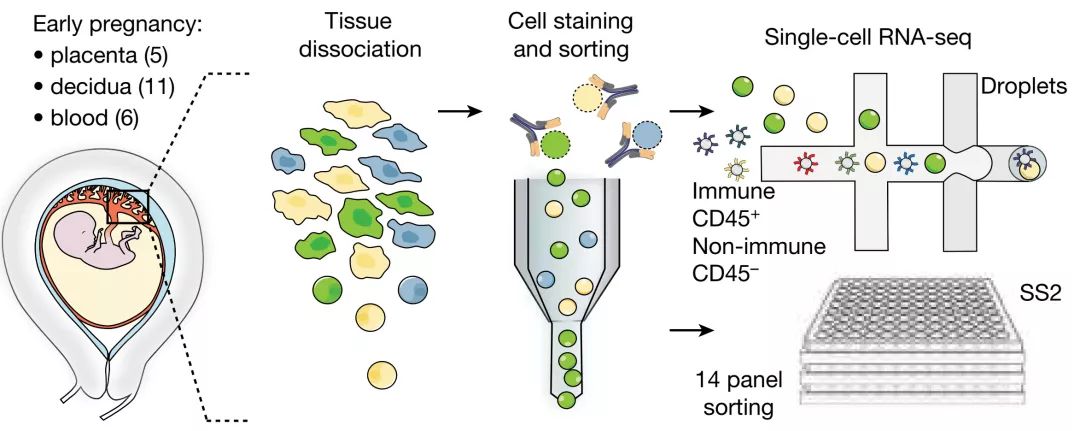 当前,人类细胞图谱(Human Cell Atlas)等国际研究项目正在尝试鉴定参与发育、健康和疾病的所有细胞类型。在人类妊娠早期,胎儿胎盘植入子宫内膜(蜕膜,decidual)、胎盘滋养细胞与母体细胞混合。这种关系对于妊娠成功至关重要,但是妊娠早期蜕膜内的细胞互作仍不清楚。