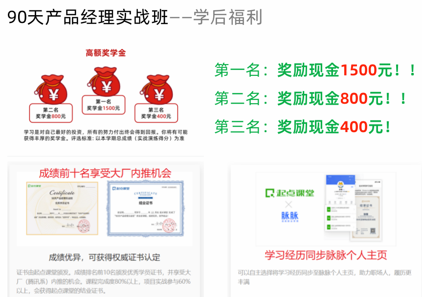 最后,报名课程的同学还有机会收获丰厚的奖学金:第一名奖励现金1500元、第二名800元、第三名400元!