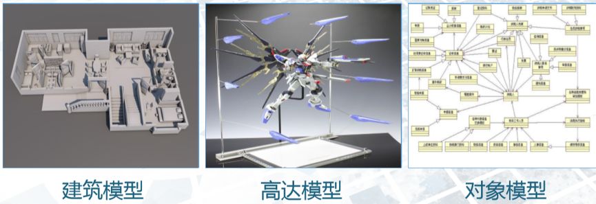 业务模型也是模型的一种,因此我们先从模型讲起。模型的概念大家可以查到很多种,不过,度娘上有一种是我觉得比较容易理解的,这个解释中说,模型是所研究的系统、过程、亊物或概念的一种表达形式,也可指根据实验、图样放大或缩小而制作的样品。很多人一说起模型都喜欢说模型是抽象的东西,模型最重要的是抽象,这个说法对软件开发人员而言并无不妥,但是对于理解模型这个概念而言,还是有些狭窄了。模型可以是具象的,可以是实物,比如售楼处常见的楼盘模型,我们的老祖宗修故宫、给皇帝家造亭台楼榭时,也会先做出精巧的木制模型;模型不仅可是真实事物,也可以是虚拟的,只要脑洞开的够大,比如很流行的高达玩具模型、变形金刚等;模型当然也可以是抽象的,比如软件开发中常用的实体模型、时序图、状态图、用例图等等。例子参见下图: