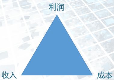 这个三角形可以说是一切盈利性企业的基本行为,企业为生产而投入成本,产品或服务销售后取得收入,而衡量企业业绩的最基本方法就是通过收入减去成本形成的利润。其实所有企业的行为都可以从这个三角形出发去分析,比如,一个企业基本流程就可以概括为: