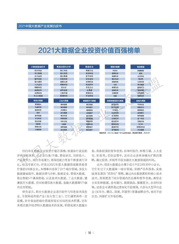 7月28日,以“数智转型 融合共生”为主题的2021(第六届)大数据产业生态大会开幕论坛顺利举行,由大数据产业生态联盟联合《软件和集成电路》杂志社、赛迪顾问股份有限公司、赛迪智库共同编制的《2021中国大数据产业发展地图暨中国大数据产业发展白皮书》(以下简称《白皮书》)重磅发布。