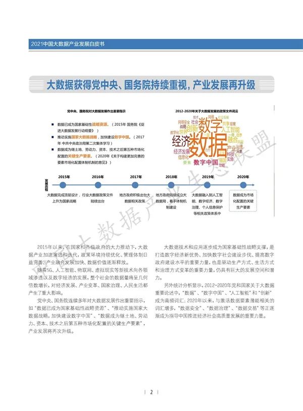 白皮书调研工作自2021年4月正式启动,通过问卷调查、网络调查、在线深度访谈等方式,对大数据基础支撑、数据服务和融合领域的数千家涉猎大数据业务的ICT企业进行深入调研分析。历经近4个月的调研工作,覆盖了2000余家大数据企业,回收有效调研问卷近千份,累积完成百余份大数据企业个案深度调研样本。白皮书分析了中国大数据产业发展演进、政策体系、园区建设、人才培育等产业发展要素情况,研判了大数据在软硬件产品、基础设施和应用服务等领域热点布局,梳理了大数据产业生态的三个层次,并重点研判了大数据产业发展的七大新趋势,为政府主管部门决策提供了资料参考,为大数据领域从业人员提供了借鉴。