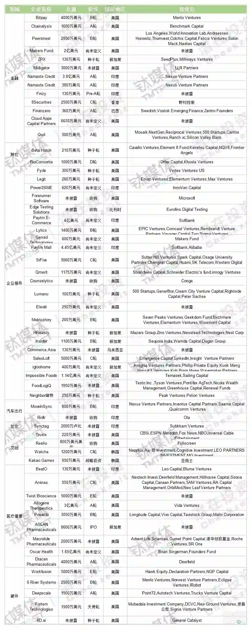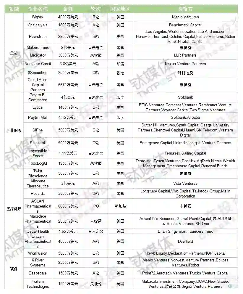 本周国外共收录59起投融资事件,企业服务、金融、医疗健康等多领域资本火热。