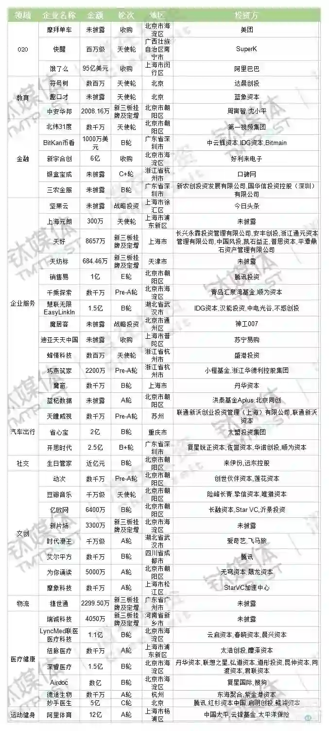 周报:第一时间汇总每周企业投融详情,综合每周投融领域概况;