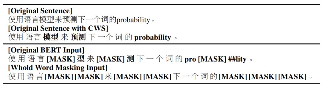然而,基于单个 token 的 mask 方法训练中文语料,可能忽略了中文分词的作用。因此,如果能够 mask 词语中每一个组成的 token,可以更好的捕捉词与词的边界关系。