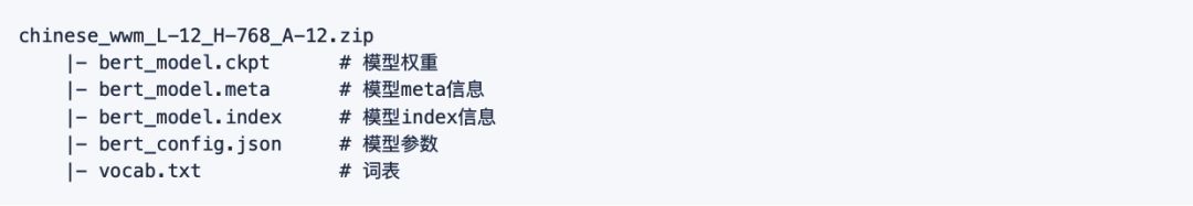其中 bert_config.json 和 vocab.txt 与谷歌原版**BERT-base, Chinese**完全一致。