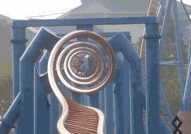 可见,过山车不过是一部利用重力和 惯性使列车沿蜿蜒的轨道行进的机器。开始时,过山车的小列车是依靠一个机械装置的推力推上最高点的,但在第一次下行后,就再也没有任何装置为它提供动力了。