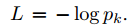 训练的目标是最大化正确输出类别(face 的id)的概率。通过最小化每个训练样本的叉熵损失实现这一点。用k表示给定输入的正确类别的标号,则叉熵损失是:
