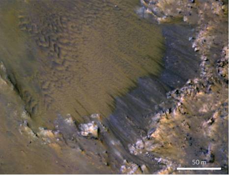 水、生命、火星,当这些关键词联系在一起时,我们不禁联想起未来人类火星定居的场景。而早在2015年NASA就已经宣布找到了火星曾存在液态水的证据。不过,我们可能高兴得太早了。最近在《自然·地球科学》杂志发表的一项研究对火星有水的证据提出了质疑。之前人们曾认为,火星表面一种季节性斜坡纹线与地球河流沉积地貌很相似,可以证明火星存在流水。然而这项研究却发现,几乎所有的季节性斜坡纹线都只发生在坡角大于27度的陡坡上,且沙流都堆积在了斜坡底的缓角。显然,这样的现象与流水冲击并不相符,反而更像是沙石“滑坡”所致。可见,为证明火星上液态水的存在,我们需要寻找去新的证据了。