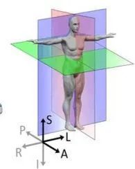 首先要明确一下和人体对应的方向,其中三个窗口对应三个切面,对应关系如下图所示,按照字母索引即可。例如,左上图对应R-A-L-P这个面,是从脚底往头部方向看的切面(即z方向),另外两张类似。