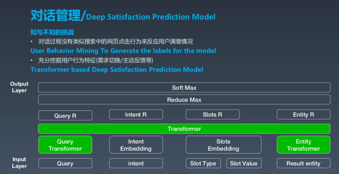 从技术角度讲,用机器学习建模重要的是要有 lable,什么是知,什么是不知,这是最难的。实际上在对话过程中没有像网页点击等其他强烈的信号,我们对此做了很多探索,比如离线用户行为挖掘,充分挖掘用户的行为特征。