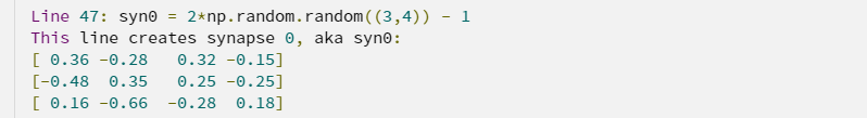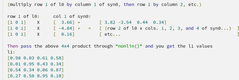 115 syn1 += l1.T.dot(l2_delta) 116 syn0 += l0.T.dot(l1_delta)