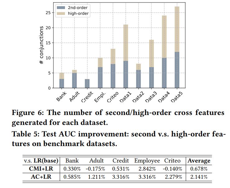 高阶特征的作用:见表 5 和图 6。从中可以得出,高阶组合特征可以有效提高模型性能。