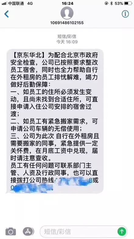 @新浪科技【京东:将为找不到住所的员工提供关怀】昨天(26日)下午,有京东员工爆料收到公司短信,称如员工住所必须发生变化且未找到合适住所时,可直接申请员工宿舍;为此次在外租房且需搬家同事提供一定关怀费。