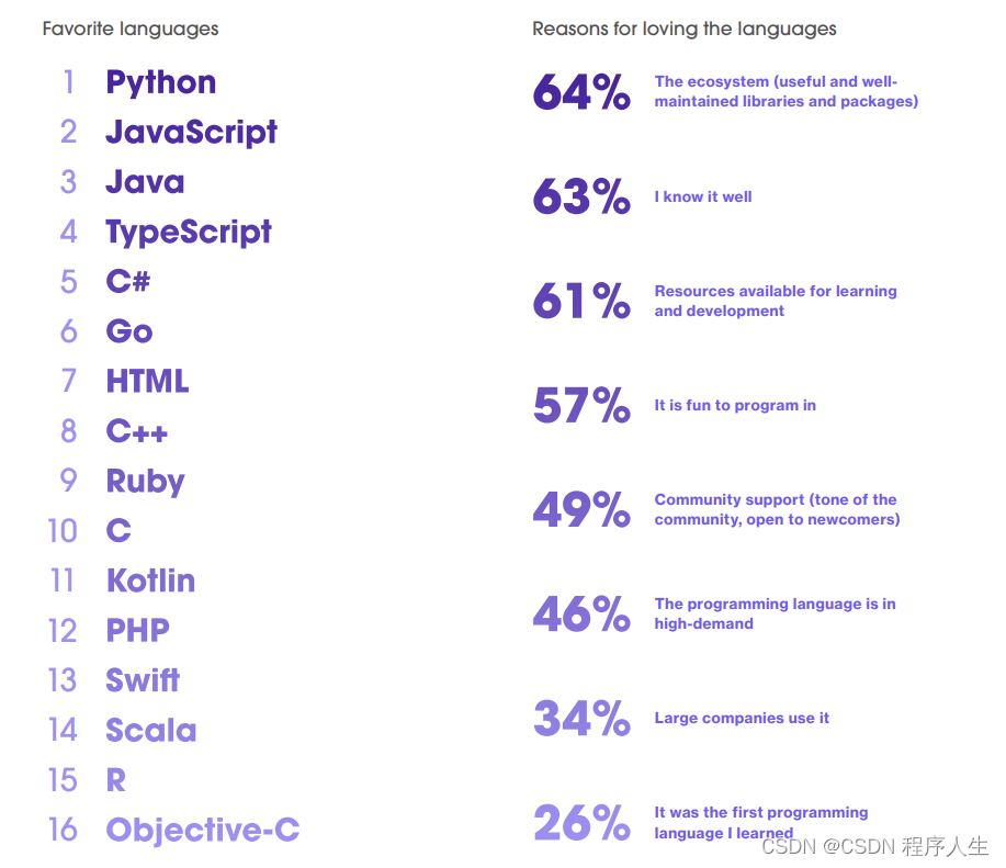 最喜欢的原因是:1.有用且拥有维护良好的库和包;2.熟悉这些编程语言,编程时更有乐趣。